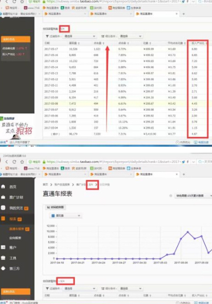 5. 预售完成,正式直通车操作推广,递增提升产品权重以及流量。在保证投产的基础上持续递增日限额,达到产品店铺稳定提升的趋势。